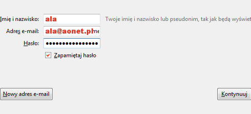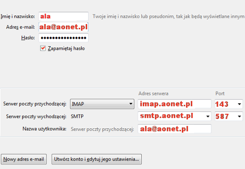 serwer poczty przychodzącej IMAP: imap.aonet.pl port 143 (z TLS)
