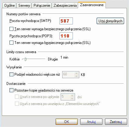 Instrukcja konfiguracji dla programu Windows Mail - zmiana adresu serwera poczty przychodzącej POP3, poczty wychodzącej SMTP oraz numeru portów.Wariant nr 1.